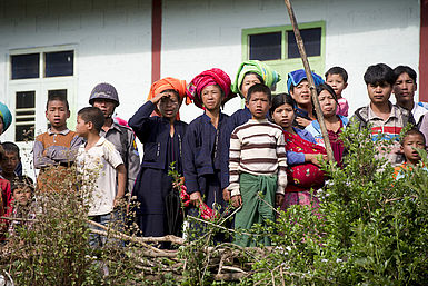 Die Fläche von Myanmar ist fast doppelt so groß wie Deutschland. In Myanmar leben rund 55 Millionen Menschen. Der Rakhaing-Bundesstaat ist eine der 15 Verwaltungseinheiten von Myanmar. Dort leben viele Menschen der muslimischen Minderheit der Rohingya. Die Rohingya werden seit vielen Jahren diskriminiert und unterdrückt. 2017 flohen etwa 700.000 Rohingya in das benachbarte Land Bangladesch. In Flüchtlingscamps in Bangladesch leben mittlerweile insgesamt rund 1,3 Millionen Menschen.
