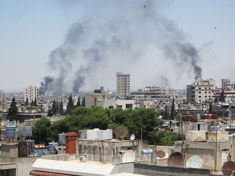 2013 Es kommt zu einem Giftgasanschlag. Das Giftgas wurde in der Nähe der syrischen Hauptstadt Damaskus versprüht. Viele Menschen sterben. Es wird gestritten, wer das Giftgas versprüht. Manche vermuten, dass es die Regierung war. Die Regierung streitet das ab.