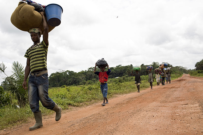 Menschen, die innerhalb ihres eigenen Landes fliehen, gehören oft zu den ärmsten oder schwächsten. Sie fliehen oft deshalb zu Fuß und nicht so weit, weil es das einzige ist, das sie sich leisten können.
