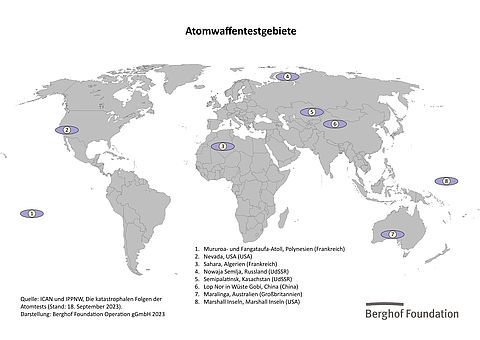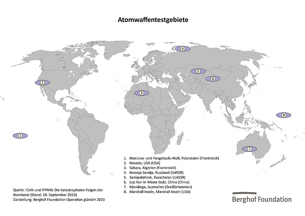 Quelle: ICAN und IPPNW, Die katastrophalen Folgen der Atomtests (Stand 18. September 2023),