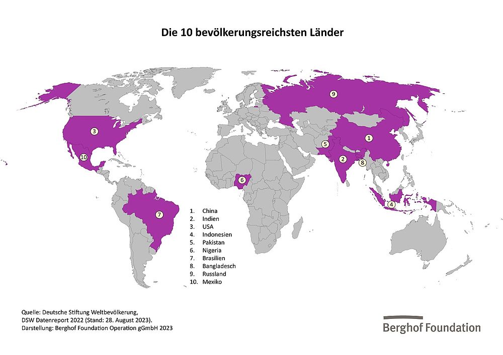 In diesen Ländern lebten 2022 die meisten Menschen weltweit: