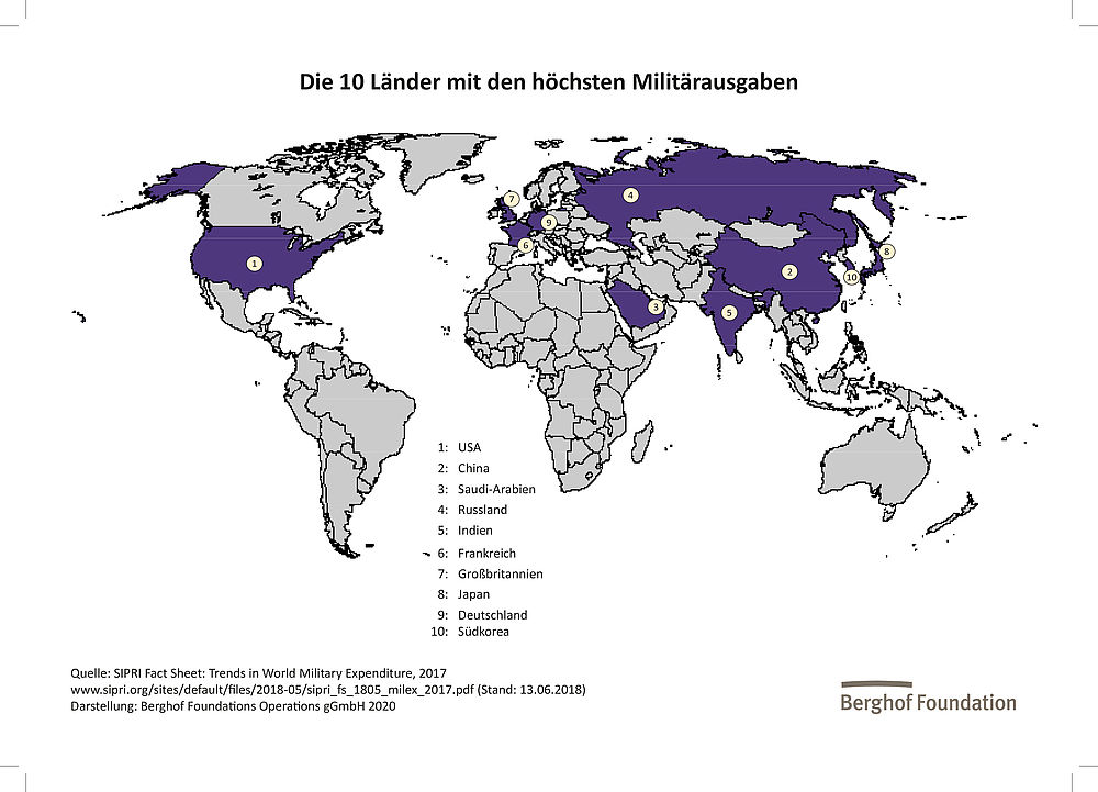 *von SIPRI geschätzte Werte Das Stockholmer internationale Friedensforschungsinstitut bringt einmal im Jahr einen Bericht über die weltweiten Militärausgaben raus.