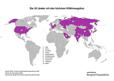 Quelle: SIPRI, Trends in World Military Expenditure 2022 (Stand: 18. September 2023), www.sipri.org/sites/default/files/2023-04/2304_fs_milex_2022.pdf