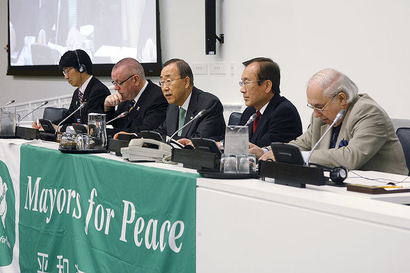 - Regelmäßig treffen sich die Bürgermeister für den Frieden innerhalb eines Landes, aber auch über Landesgrenzen hinweg. 2003 hat die Konferenz der Bürgermeister für den Frieden bei einer dieser Treffen einen Plan für eine atomwaffenfreie Zukunft ausgearbeitet. Darin werden einzelne Schritte beschrieben, wie bis zum Jahr 2020 eine Welt ohne Atomwaffen erreicht werden kann.
