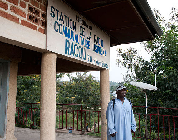 Dieser Radiosender heißt Ushirika. Was auf Deutsch "Gemeinschaft" bedeutet. Radio Ushirika sendet in vier Sprachen: Französisch, Swahili, Kinande und Kinyarwanda. Denn in Nord-Kivu werden viele verschiedene Sprachen gesprochen.