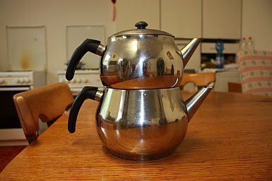 Janas Familie hat kaum noch Gegenstände aus dem Kosovo. Mit diesem Teekessel aus dem Kosovo kocht die Familie immer Tee, den sie zusammen trinkt.