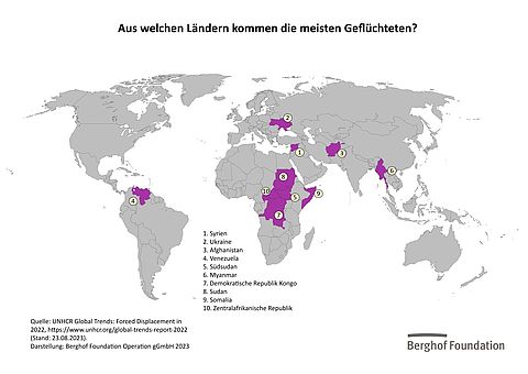 Aus diesen Ländern kamen Ende 2022 die meisten Geflüchteten: